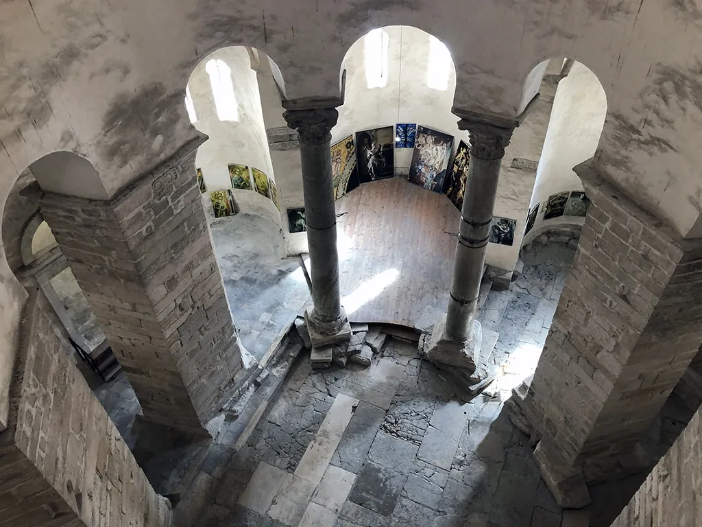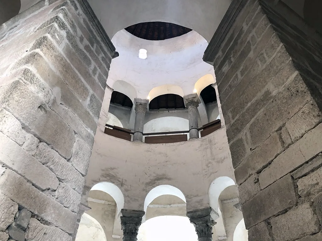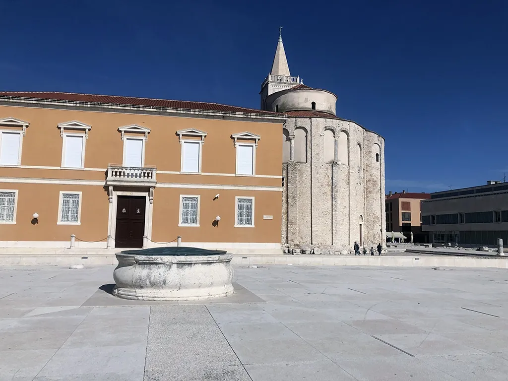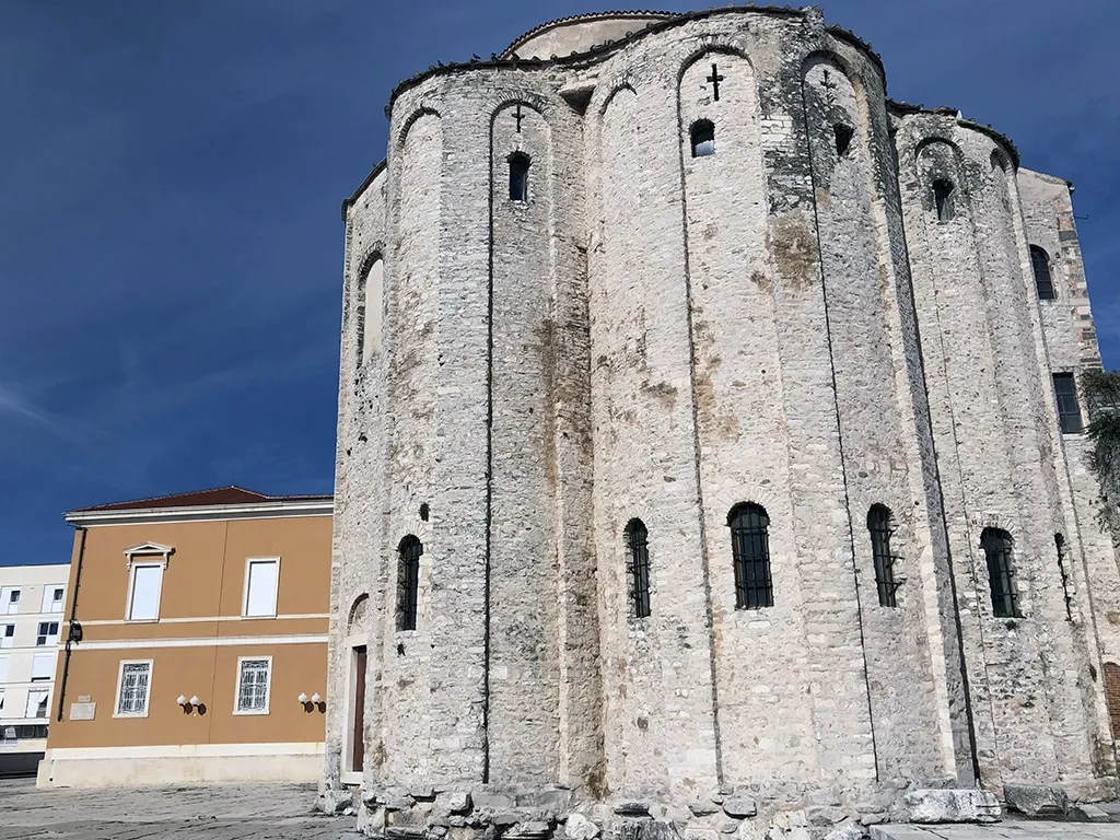 Essa é fácil de reconhecer. Chegando na área do Fórum Romano, você consegue ver a igreja redondinha no cantinho. Pagamos 20 kunas para fazer a visita à esse local que, de igreja, hoje só tem o nome. Há um tempo ela perdeu a sua função “sacra”, e durante um bom tempo (do fim do século XIX até 1954) ela foi usada até para abrigar o Museu Arqueológico de Zadar. Depois, graças às suas excelentes características acústicas, hoje é utilizada para apresentações musicais.