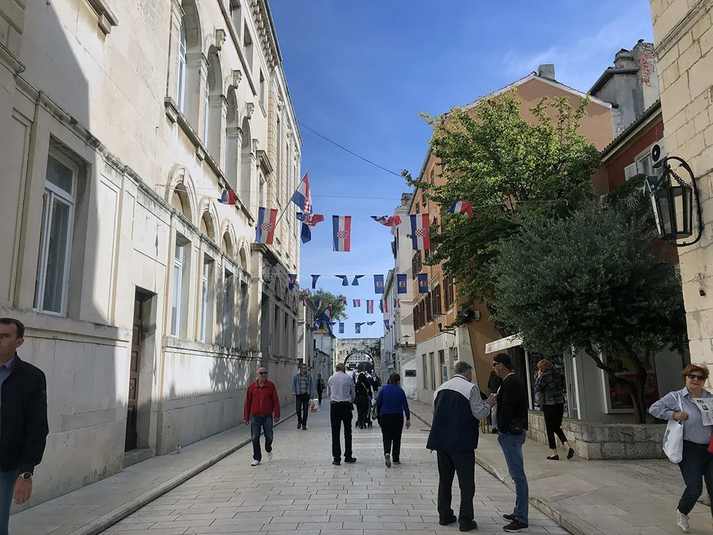 Resumidamente: a praça do povo. Essa praça é importante para Zadar desde o período medieval pois é o centro da vida pública – e atualmente, é também o centro da administração da cidade com a prefeitura. É ali que as pessoas se reuniam para discutir os assuntos mais importantes da cidade. Já o relógio da torre que você pode ver em um dos lados da praça, foi construído em meados do século XVI e opera continuamente desde 1803.